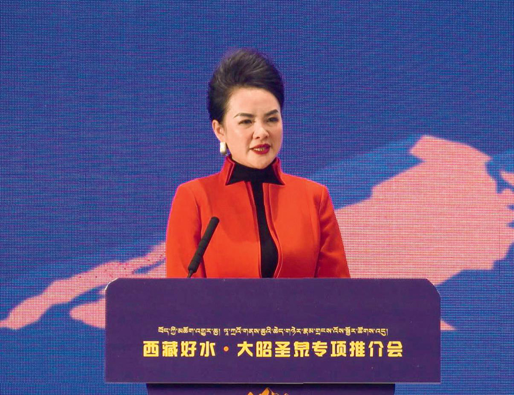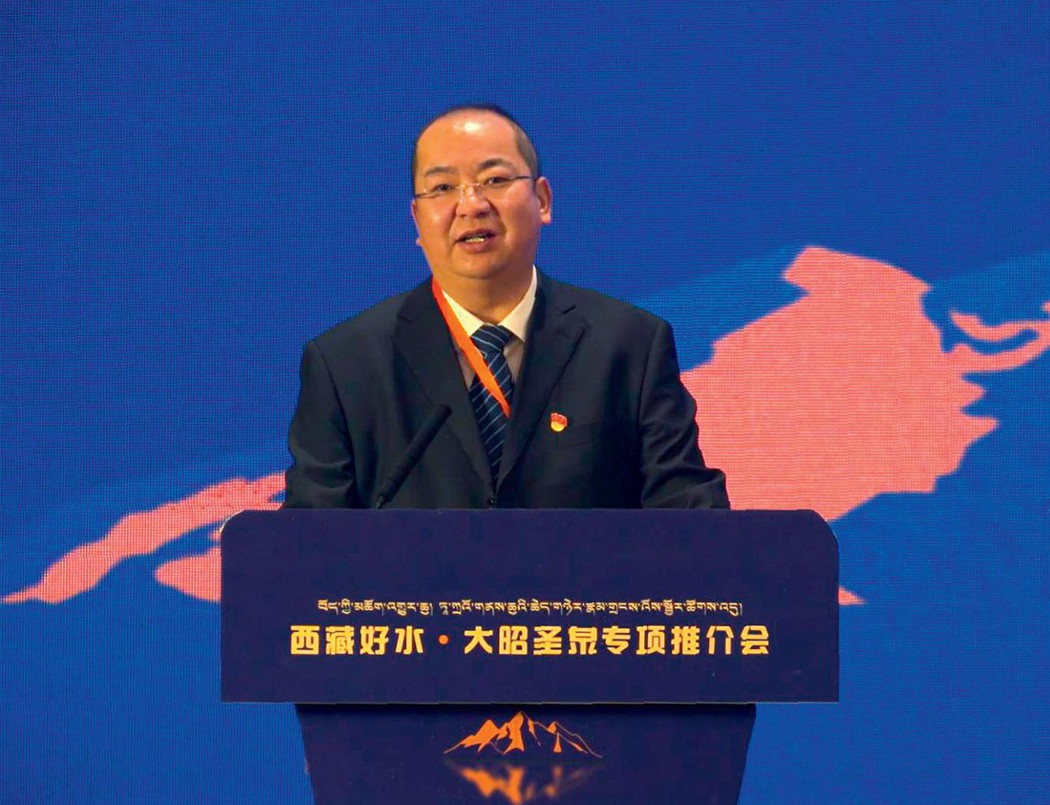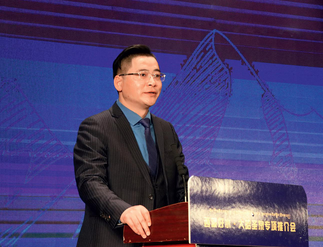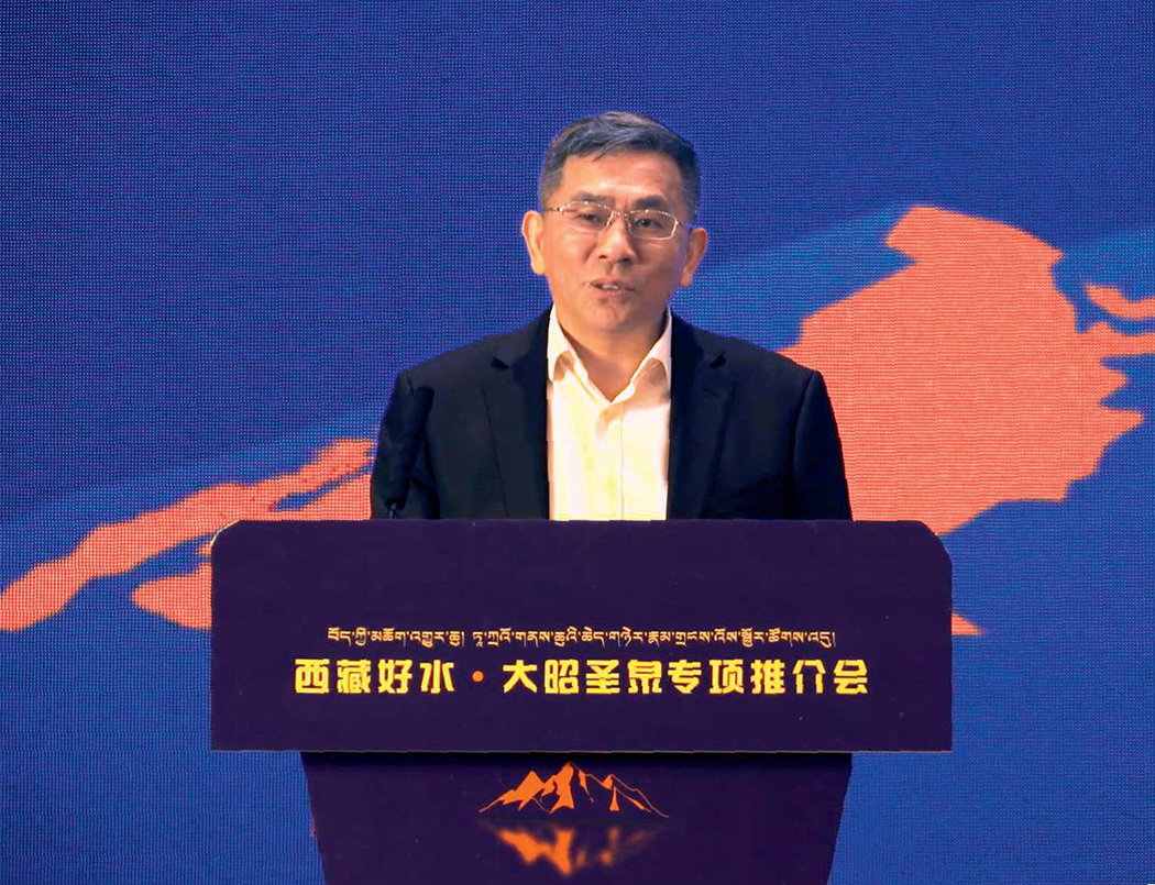 西藏凈善水業(yè)有限公司董事劉建春在推介會上詳細(xì)介紹了公司情況、企業(yè)文化和大昭圣泉產(chǎn)品、市場計(jì)劃,宣布推出兩款升級新品“金山”和“格?;ā保笸把b水上市。