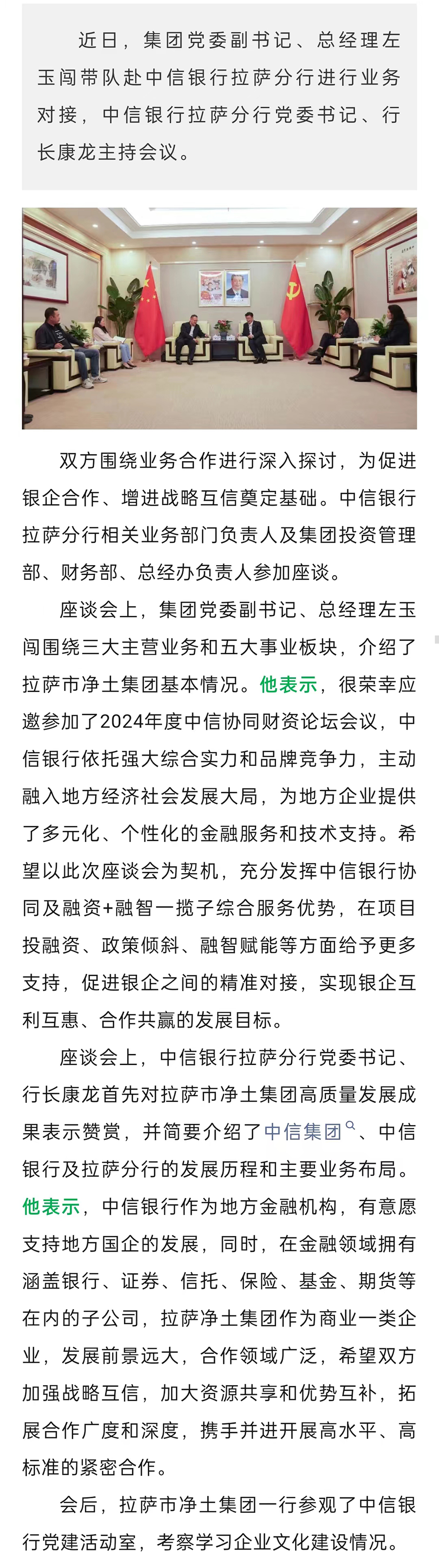 銀企攜手 揚帆“企”航——拉薩市凈土集團與中信銀行拉薩分行進行業(yè)務對接