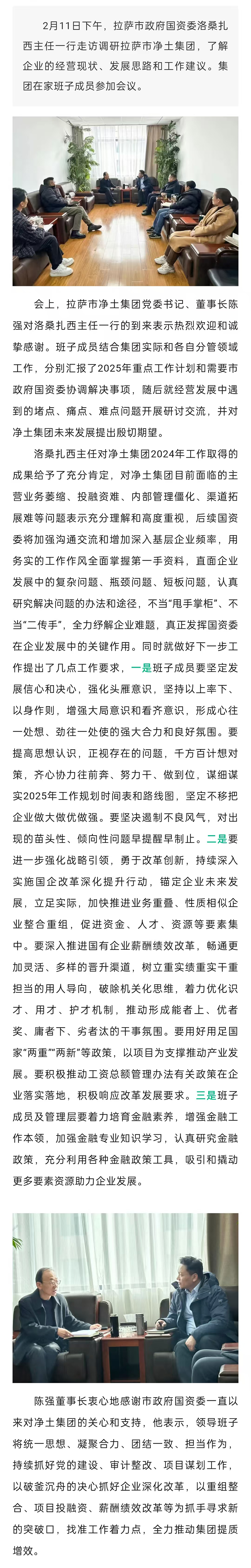 拉薩市政府國(guó)資委洛桑扎西主任一行赴拉薩市凈土集團(tuán)開(kāi)展走訪調(diào)研
