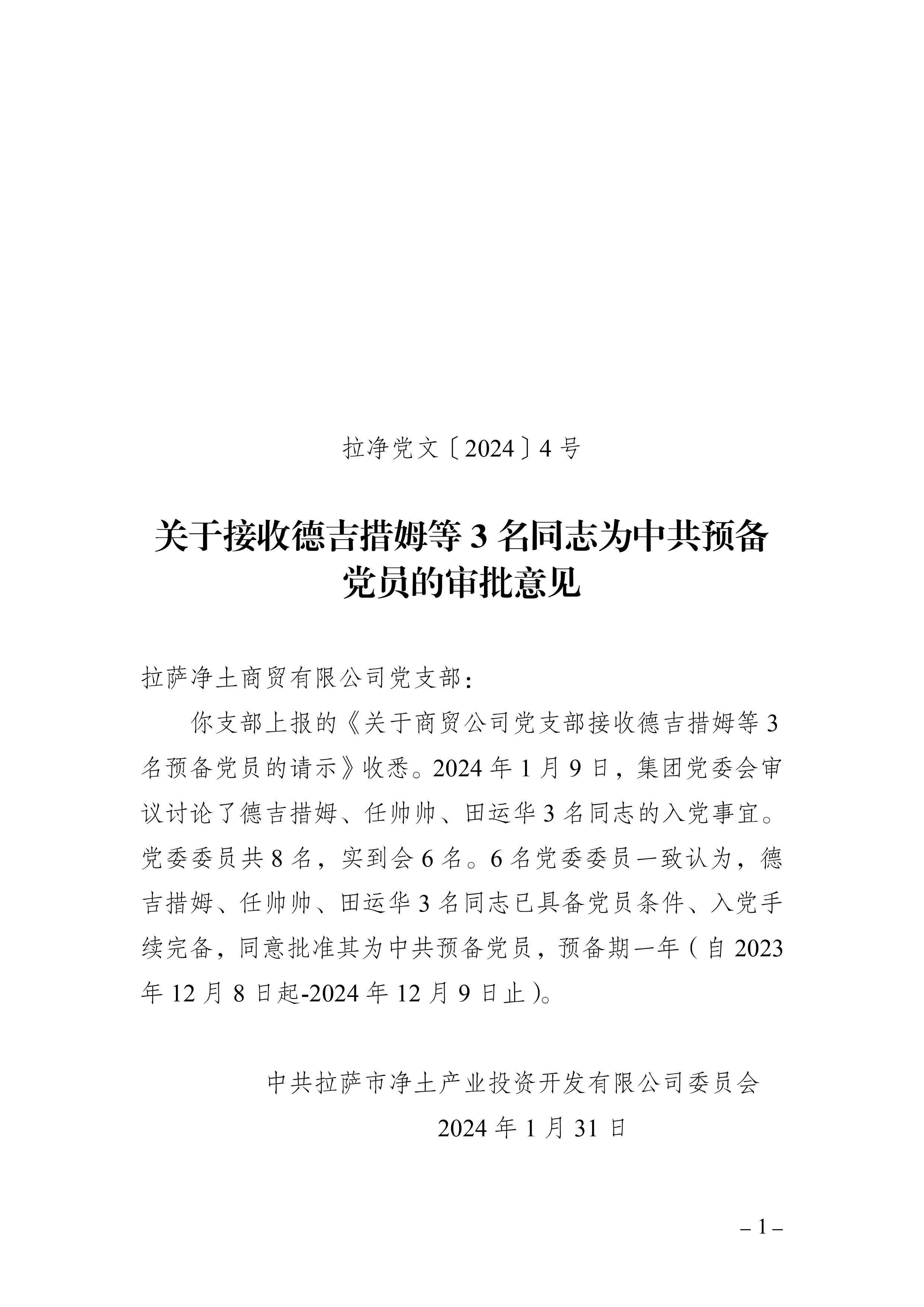 商貿(mào)公司德吉措姆等3名同志預(yù)備黨員審批意見