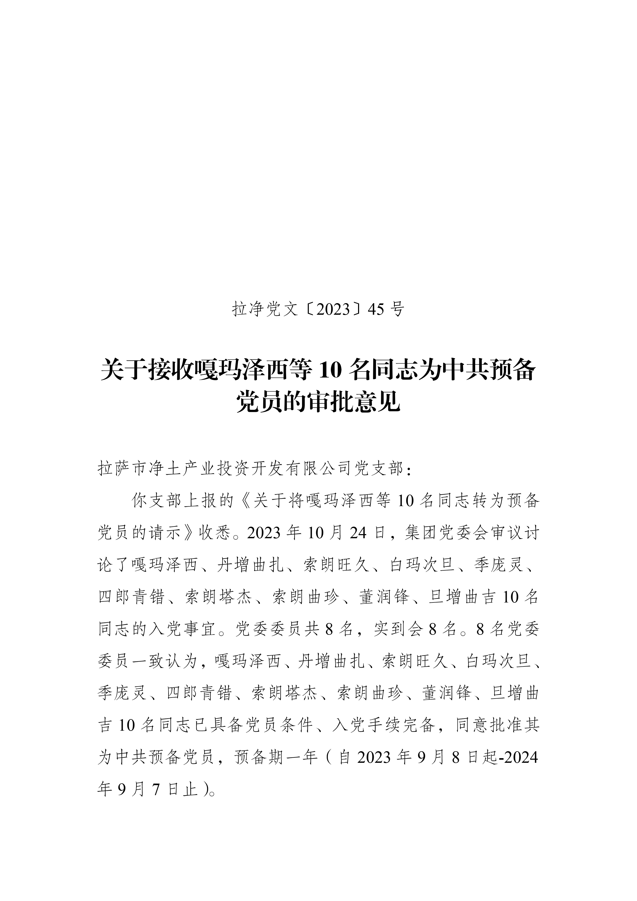 關(guān)于接收嘎瑪澤西等10名同志為預(yù)備黨員的審批意見(jiàn)