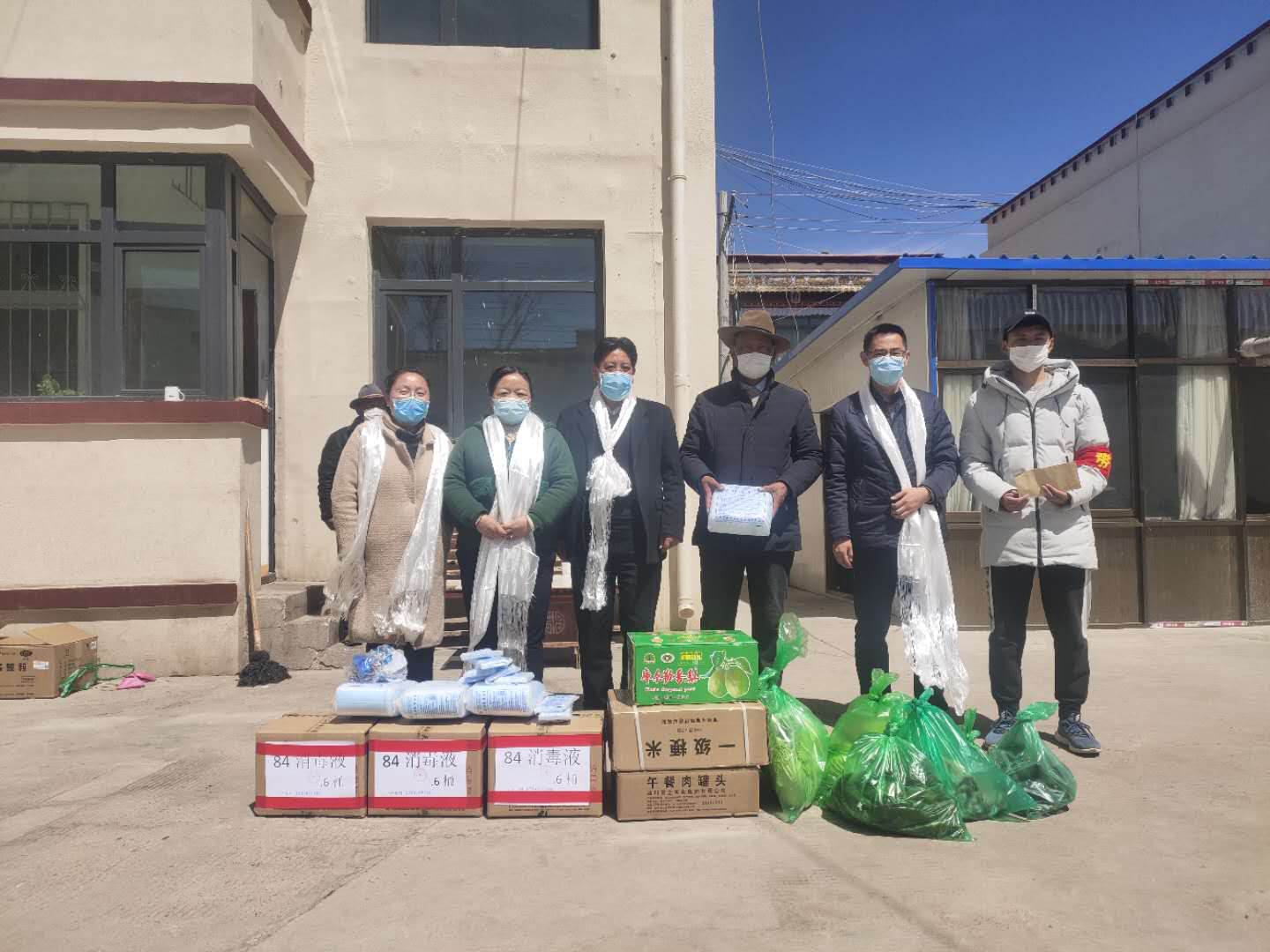 3月25日上午,拉薩市凈土集團黨委副書記達瓦頓珠同志、黨委副書記、紀委書記德央同志、黨委委員馬永青同志到甘曲村,對甘曲村駐村工作隊進行了慰問,為他們送去疫情防控物資(18桶84消毒液、700個醫(yī)用口罩、20個防疫香囊)。向駐村工作隊發(fā)放新鮮水果蔬菜、大米、午餐肉罐頭等物品以及慰問金。